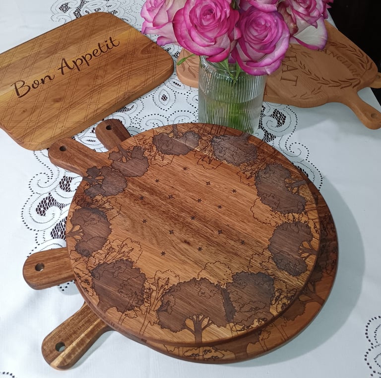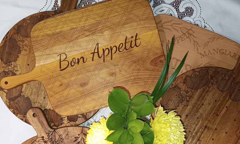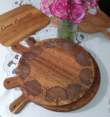 Discover our unique cutting boards, perfect for any kitchen. Each piece is crafted with love, showcasing the beauty of wood and functionality for your culinary adventures.